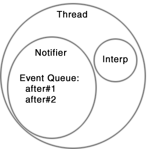 In the most simple case, a Thread would contain a single Tcl interpreter and a Notifier object.